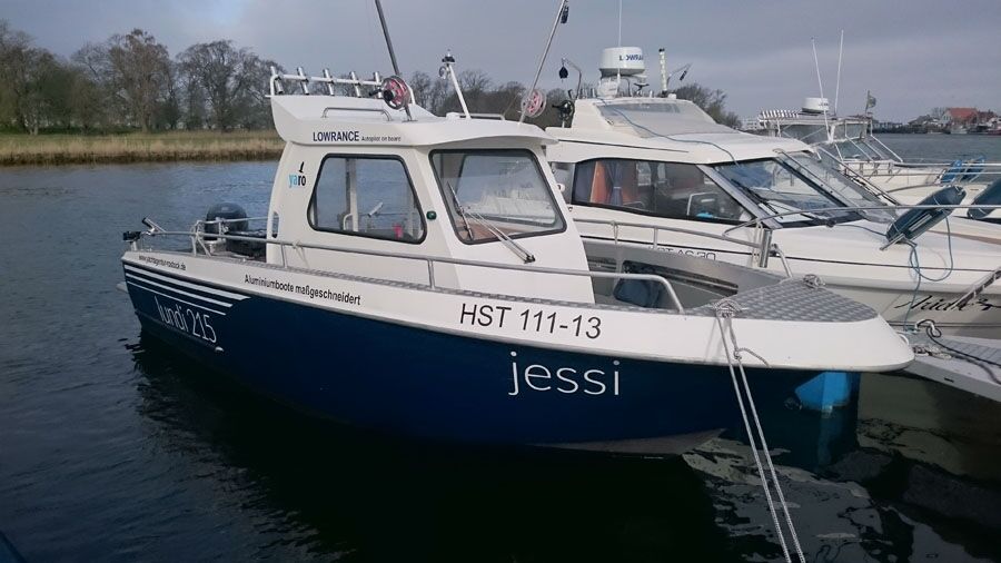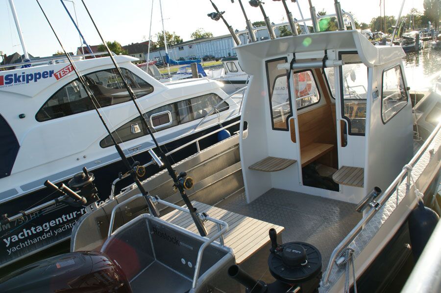 Die "Jessi" ist ein robustes Alu-Sportfischerboot für max. 6 Personen. Sie können die "Jessi" in Rostock Gehlsdorf chartern. Die "Jessi" verfügt über ein Steuerhaus mit bis zu vier Sitzplätzen. Der Zugang erfolgt von achtern. Links und rechts neben dem Zugang befindet sich jeweils ein weiterer geschützer Sitzplatz.